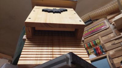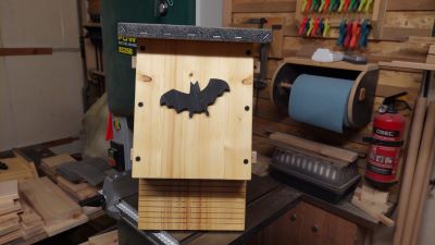 Der Fledermauskasten ist außen 1x mit Leinöl gestrichen worden.