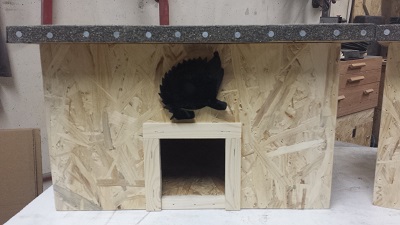 Das Igelhaus hat den Eingang in der Mitte und ist ohne Pendelklappe und ohne Schleusengang.