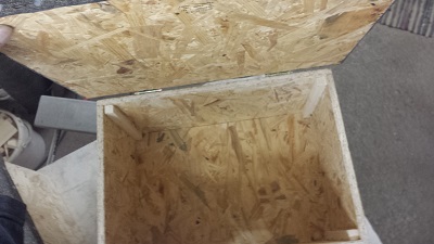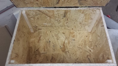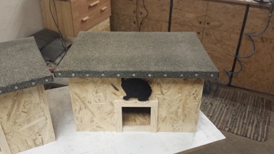 Das Dach bzw. der Deckel ist mit Dachpappe (oder gesandet) versehen und mit jeweils zwei Scharnieren befestigt