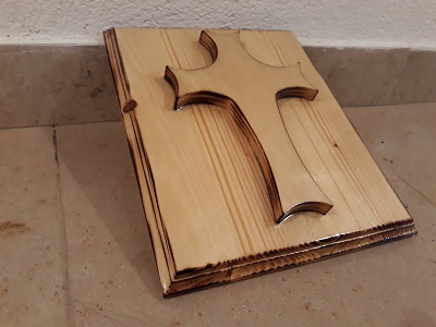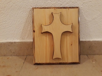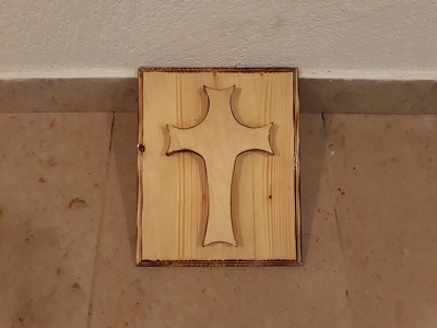 Einfaches Kreuz auf Sockel zum aufhängen.