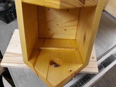 Das Einflugloch hat eine Größe von 28mm und hat einen kleinen Anflugstutzen.