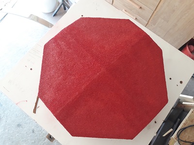 Das Dach ist gesandet und kann daher in jeder Farbe gestellt werden, wie hier in rot.